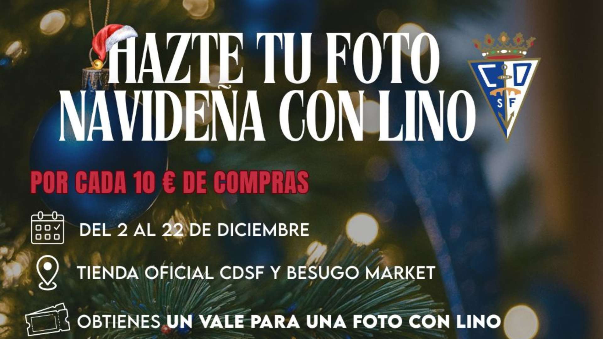 El CD San Fernando pone en marcha desde este martes 2 de diciembre una bonita iniciativa navideña. Todo aquel aficionado que realice compras superiores a 10€ tendrá la posibilidad de realizar una foto con Lino, el León Azulino, mascota de nuestro Club.